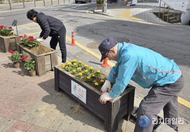 이번 활동은 통장협의회를 중심으로 주민들이 직접 참여하고 주도한 환경정비로, 관내에 설치된 크고 작은 화분 약 40여 개에 다양한 봄꽃을 식재하고 주변 환경을 함께 정비하며 마을 곳곳에 화사한 봄기운을 더했다.