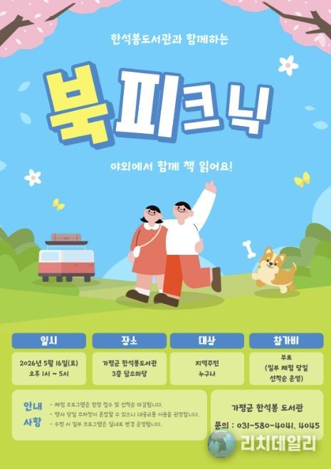 리치데일리 김상현 기자 | 가평군은 5월 가정의 달을 맞아 오는 16일 한석봉도서관 3층 담소마당에서 ‘가족과 함께하는 북 피크닉’ 행사를 개최한다고 밝혔다.