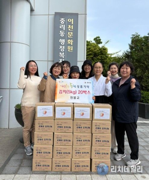 리치데일리 김상현 기자 | 이천시 중리동행정복지센터는 원불교가 지역 내 어려운 이웃들을 위해 김치(5kg) 20박스를 기탁하며 따뜻한 나눔을 실천했다고 밝혔다. 이번 기탁은 경제적 어려움과 돌봄 공백 등으로 일상생활에 어려움을 겪고 있는 취약계층 이웃들에게 조금이나마 힘이 되고자 마련됐다.