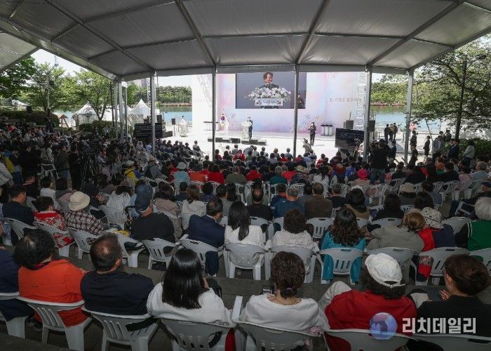 행사는 개회선언과 고양시립합창단의 축하공연을 시작으로 개회사, 오프닝 세리머니(버튼 이벤트·LED 개화 영상), 가수 김다현의 축하무대가 이어져 행사를 분위기를 띄웠다.