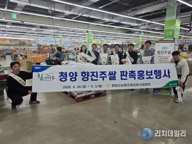 리치데일리 김상현 기자 | 청양군이 24일부터 오는 5월 3일까지 10일간 농협 하나로마트 대전점(중구 안영동)에서 청양군 대표 고품질 쌀 브랜드인 ‘칠갑마루 향진주쌀’의 판촉·홍보 행사를 진행한다.