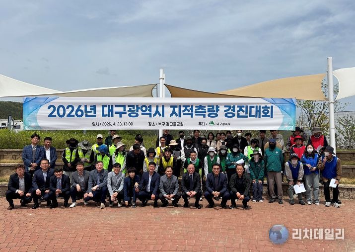 리치데일리 김상현 기자 | 대구광역시는 4월 23일 북구 검단들공원에서 9개 구·군 지적공무원들이 참여하는 ‘2026년 지적측량 경진대회’를 개최했다. 이번 대회 결과, 중구가 최우수상의 영예를 안았으며, 북구와 동구가 각각 우수상과 장려상을 받았다.