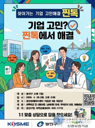 리치데일리 김상현 기자 | 광진구가 중소벤처기업진흥공단과 협력하여 관내 기업들의 경영 애로사항을 현장에서 해결하는 '중소기업·스타트업 찐(眞)톡(Talk)' 프로그램이 본격 시행된다.
