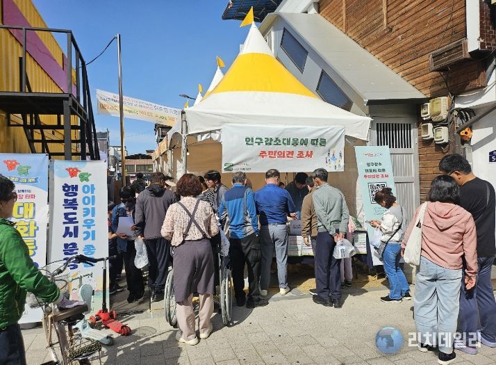 현장에서는 온라인(QR코드·태블릿)과 오프라인(설문지 작성) 방식을 병행한 설문조사를 실시했다. 설문은 시민용과 타지역 거주민용으로 구분해 각 집단의 특성과 정책 수요를 반영한 맞춤형 의견수렴이 이루어지도록 했으며, 참여자에게는 소정의 기념품을 제공해 자발적인 참여를 유도했다. 결혼·출산 지원, 청년 일자리, 생활 인프라 확충 등 주요 인구정책 전반에 대한 시민들의 관심도 높게 나타났다.