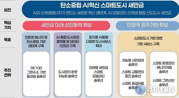 이번 계획은 새만금을 탄소중립과 인공지능(AI) 기반의 미래 혁신 도시로 조성하기 위한 중장기 전략으로, 글로벌기업 협업과 첨단기술을 기반으로 한 선도형 스마트도시 모델을 제시한 것이 특징이다.