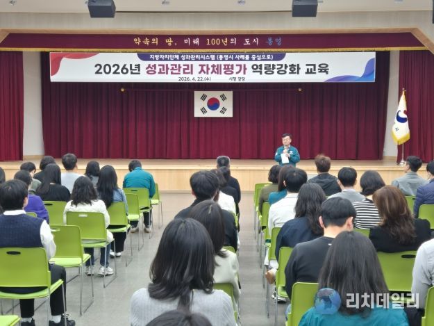 리치데일리 김상현 기자 | 통영시는 지난 22일 시청 강당에서 부서별 성과지표 담당자 등 전 직원을 대상으로 2026년 성과관리 자체평가 역량강화 교육을 실시했다.