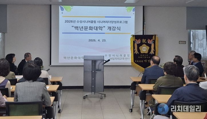 리치데일리 김상현 기자 | 대구 수성시니어클럽이 운영하는 ‘백년문화대학’ 개강식이 지난 23일 백년문화대학 회원 등 80여 명이 참석한 가운데 수성시니어일자리교육센터에서 개최됐다.