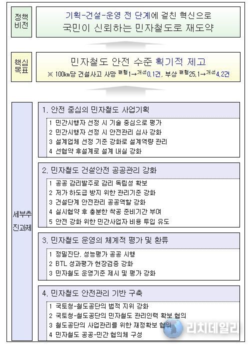 리치데일리 김상현 기자 | 국토교통부는 민자철도 건설현장에서의 안전사고 재발을 방지하고, 국민이 안전하게 이용하는 민자철도를 구축하기 위해 「민자철도 안전관리 강화방안」을 추진한다.