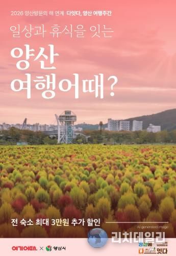 리치데일리 김상현 기자 | 양산시는 ‘2026 양산방문의 해’를 맞아 당일형 관광에 치중된 여행 패턴을 관내에서 하룻밤 머무는 ‘체류형 관광’으로 전환하면서 지역 관광 산업에 활력을 불어넣기 위해 추진한 숙박 할인 프로모션 ‘다잇다, 양산 여행주간’이 관광객들의 높은 이용률 속에 개시 일주일 만에 종료됐다고 밝혔다.