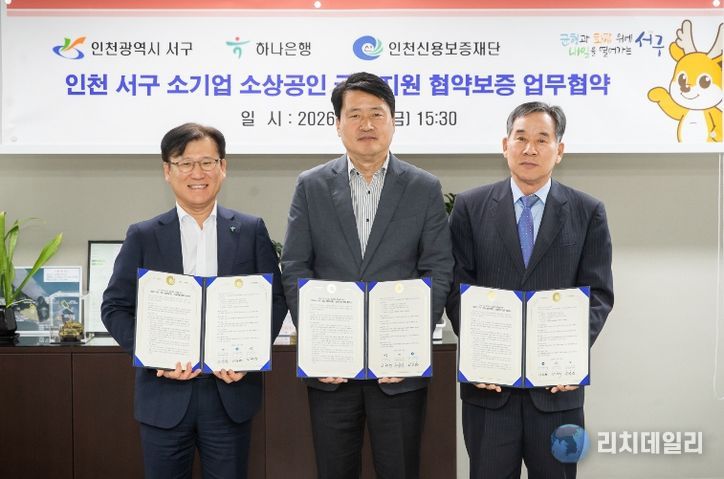 리치데일리 김상현 기자 | 인천 서구는 지난 24일 하나은행, 인천신용보증재단과 함께 15억원 규모의 '서구·하나은행 특별지원 협약보증' 및 '인천서구 특례보증업무협약'을 체결했다고 밝혔다.