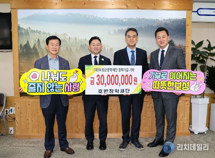 리치데일리 김상현 기자 | 보성군은 24일 호반장학재단(이사장 김상열)이 지역 인재 양성을 위해 장학기금 3,000만 원을 (재)보성군장학재단(이사장 문찬오)에 기탁했다고 밝혔다.