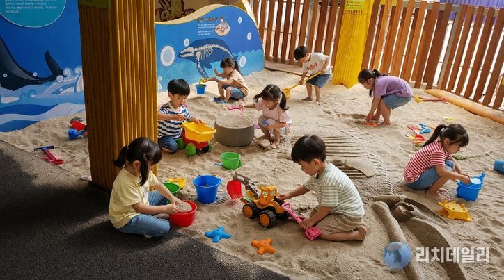 물모래 놀이터는 물과 모래를 이용한 놀이에 과학 학습을 더해, 미취학 아동들이 풍부한 감각 체험을 하며 창의력을 키울 수 있는 전시 체험 공간이다.