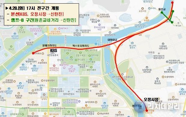 이번에 개통되는 구간은 천변도시고속화도로 본선(둔산→ 신탄진 방향)과 원촌교네거리에서 신탄진 방향으로 연결되는 원촌육교 램프-B 구간 등 통제를 시행했던 전 구간이다.
