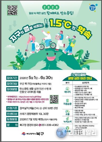 리치데일리 김상현 기자 | 부산 북구는 오는 5월 1일부터 ‘지구의 열을 식히는 1.5℃의 약속’ 사업을 추진한다고 밝혔다.