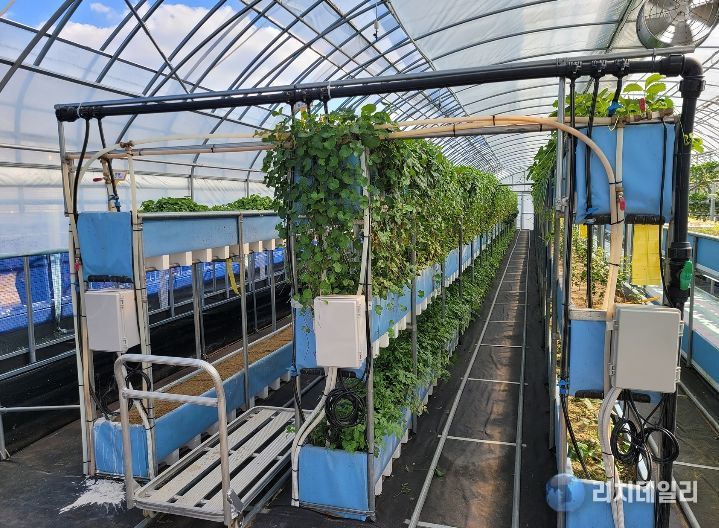 이 장치는 모래베드를 활용해 식물이 흡수한 만큼만 양액을 공급하는 방식이다. 양액 배출을 없애 양액 비용을 줄이고 폐양액 발생을 최소화할 수 있다. 상토소독(담수), 양·수분 관리와 병해충 방제 자동화, 수확과 세척을 동시에 할 수 있는 기능을 갖춰 노동력 절감에도 도움이 된다.