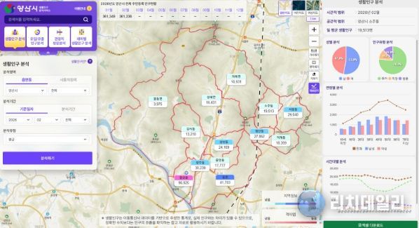 리치데일리 김상현 기자 | 양산시가 시민 누구나 지역 인구 흐름을 확인할 수 있는 ‘양산시 생활인구 분석 서비스’를 구축해 공개했다.