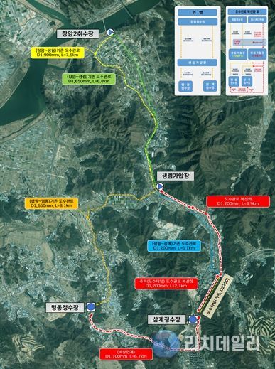 도수관로는 취수원(원수)에서 정수장까지 원수를 운반하며 송수관로는 정수장에서 배수지(수돗물 저수지)로 송수하기 위한 관로이다. 해당 사업은 올해부터 2045년까지 20년 동안 총 1,802억원이 투입되며 도수관로를 시작으로 복선화사업을 점진적으로 완료한다.