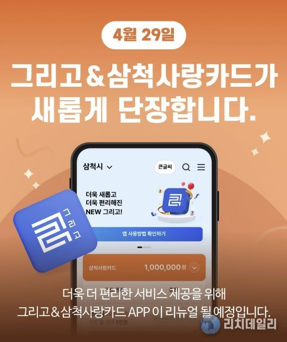 리치데일리 김상현 기자 | 삼척시는 4월 29일부터 시민 소통 기능 및 사용자 편의성을 한층 강화해 ‘삼척사랑카드’앱을 새롭게 선보인다.