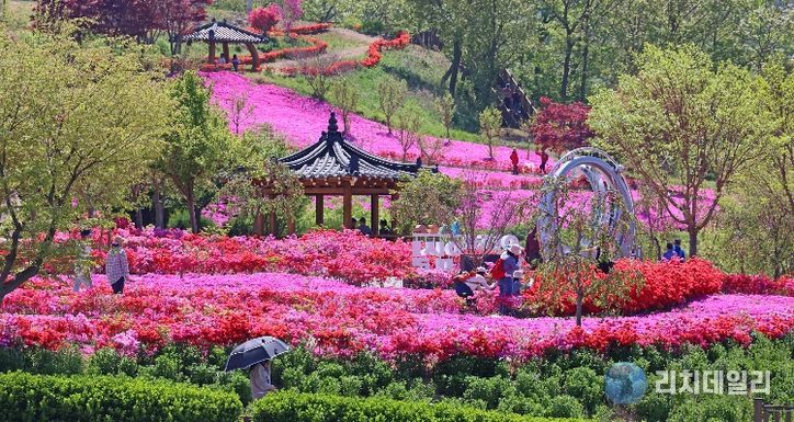 특히, 4월중순부터 본격 개화한 꽃잔디는 대지를 뒤덮은 분홍빛 융단을 깔아 놓은 듯한 장관을 연출하고 있으며, 이어 개화를 시작한 철쭉은 선명한 색감으로 공간의 깊이를 더해 방문객들의 감탄을 자아내고 있다.