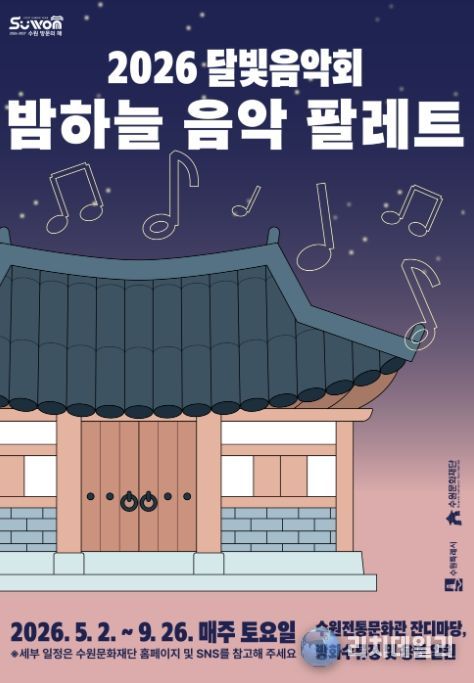리치데일리 김상현 기자 | 수원문화재단은 오는 5월부터 9월까지 국가유산과 자연, 음악이 어우러진 야간 공연 프로그램 '2026 달빛음악회 '밤하늘 음악 팔레트'’를 운영한다.