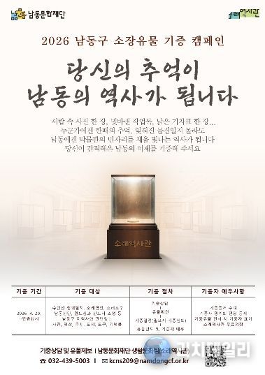 남동문화재단은 소래역사관을 중심으로 ‘2026 남동구 소장유물 기증 캠페인’을 오는 4월 20일부터 연중 상시 운영한다고 28일 밝혔다.