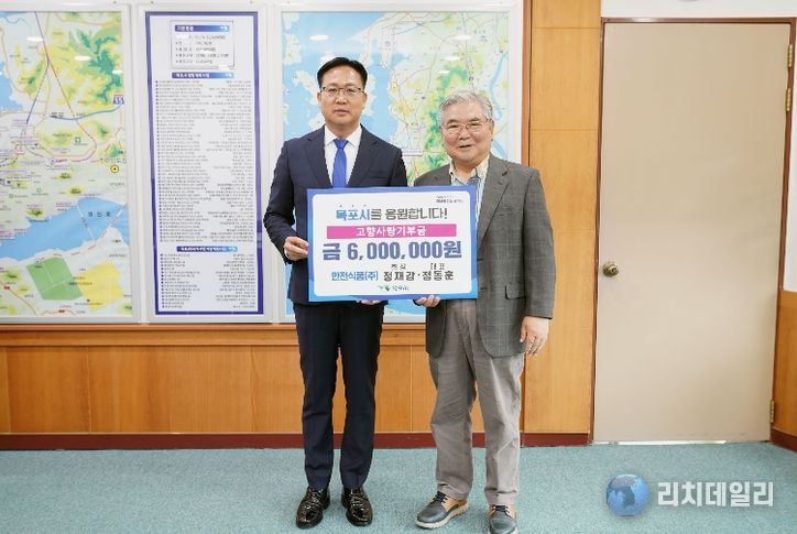 리치데일리 김상현 기자 | 목포시는 지난 27일 만전식품 정재강 회장이 시를 방문해 고향사랑기부금 600만 원을 기탁했다고 밝혔다.
