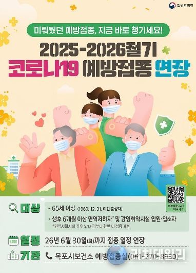 리치데일리 김상현 기자 | 목포시는 2025~2026절기 코로나19 예방접종사업 기간을 오는 5월 1일부터 6월 30일까지 2개월간 연장 운영한다고 밝혔다.