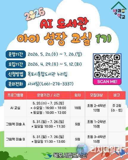 리치데일리 김상현 기자 | 목포시립도서관은 관내 초등학생을 대상으로 AI 융합 체험형 프로그램 ‘AI 도서관·아이 성장 교실’을 오는 5월 20일부터 운영한다.