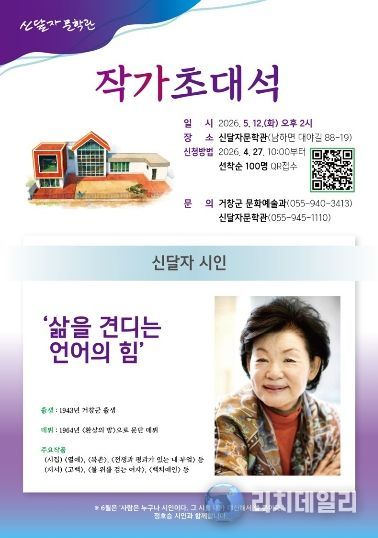 한편, 신달자문학관 ‘작가초대석’은 국내 주요 문인을 초청해 작품 세계와 삶의 이야기를 직접 들을 수 있는 문학 프로그램으로, 매월 1회 운영될 예정이다. 오는 6월에는 정호승 시인, 7월에는 신달자 시인, 8월에는 나태주 시인이 강연을 진행할 예정이다. 강연 관련 문의는 거창군 문화예술과 또는 신달자문학관으로 하면 된다.