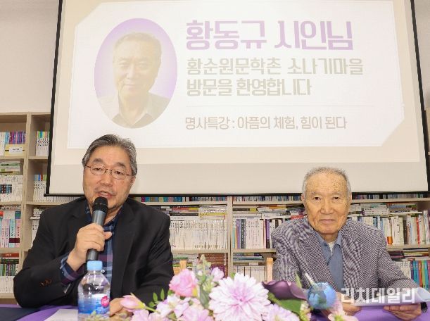 리치데일리 김상현 기자 | 황순원 작가의 장남인 황동규(1938~) 시인이 지난 23일 서종면에 위치한 황순원문학촌 소나기마을(촌장 김종회)에서 열린 ‘2026 소나기마을 문학교실’에서 ‘아픔의 체험, 힘이 된다’를 주제로 특별 강연을 진행했다.