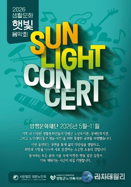 리치데일리 김상현 기자 | (재)양평문화재단은 관내 문화 예술 향유 기회를 확대하기 위해 찾아가는 음악회 ‘2026 햇빛 음악회’를 오는 5월 8일부터 본격적으로 운영한다고 밝혔다.