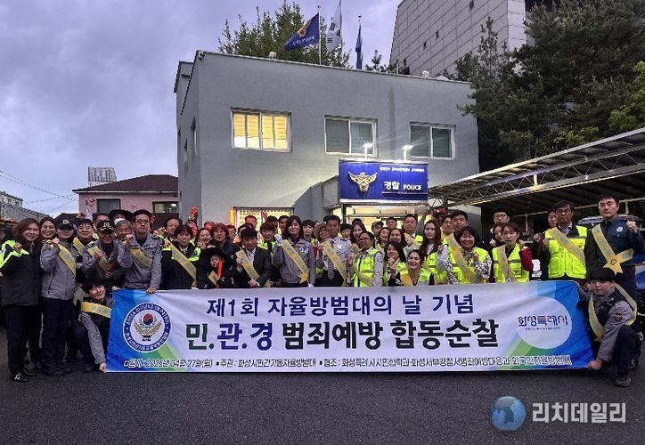 리치데일리 김상현 기자 | 화성특례시는 제1회 자율방범대의 날을 맞아 지난 27일 남양시장 일대에서 화성서부경찰서, 서부민간기동자율방범연합대와 함께 민·관·경 합동순찰을 실시했다.