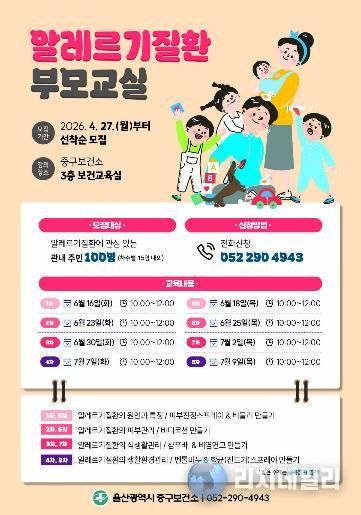 리치데일리 김상현 기자 | 울산 중구보건소가 ‘아토피·천식 예방관리사업’의 하나로 ‘알레르기질환 예방관리 부모교실’을 운영한다.