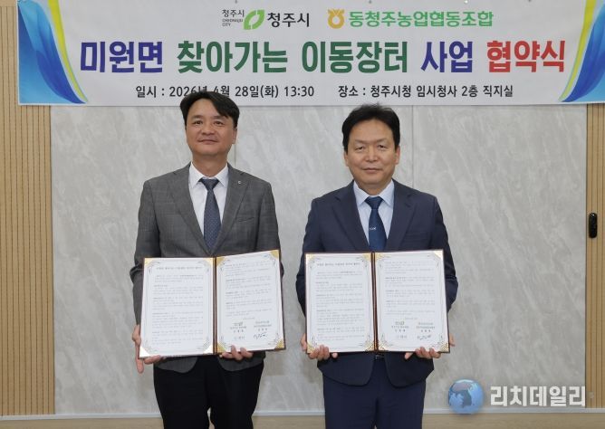 협약에 따라 시는 시 소유 3.5톤 탑형 특장 차량을 제공하고 운영비를 지원한다. 동청주농협은 오는 5월부터 2027년 12월까지 이동장터 운영과 차량 관리를 전담한다.