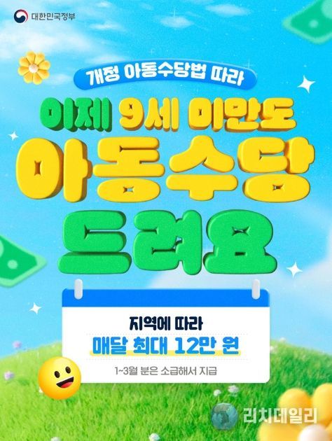 리치데일리 김상현 기자 | 개정 아동수당법 따라 이제 9세 미만도 아동수당 드려요.