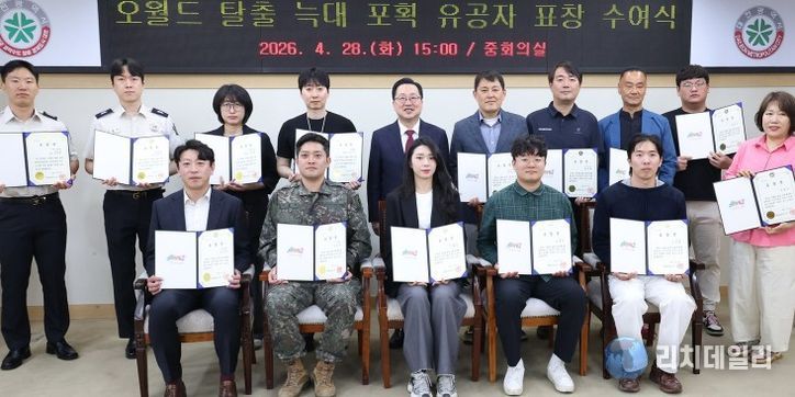 리치데일리 김상현 기자 | 대전시는 4월 28일 오후 3시 시청 중회의실에서 대전오월드를 탈출한 늑대‘늑구’를 생포하는데 기여한 민간 유공자와 공무원 등 총 15명에게 표창을 수여했다.