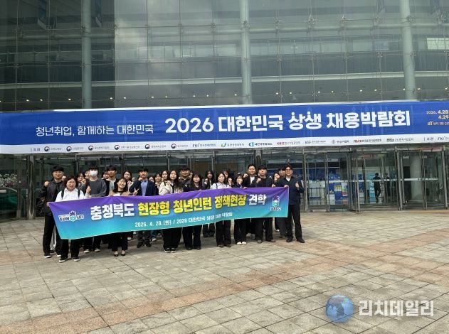 리치데일리 김상현 기자 | 충북도는 28일 도내 현장형 청년인턴 34명을 대상으로 서울 aT센터에서 열린 ‘2026 대한민국 상생 채용박람회’에서 정책현장견학을 실시했다.