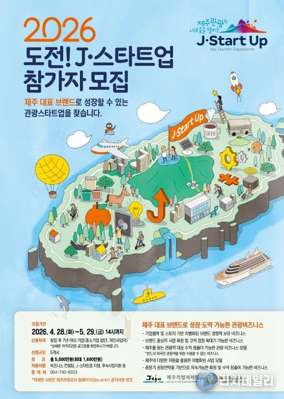 리치데일리 김상현 기자 | 제주특별자치도와 제주관광공사(사장 고승철)는 오는 5월 29일까지 온라인 채널을 통해 제주 관광산업 혁신을 선도할 유망 기업을 발굴하고 육성하기 위해 ‘2026 도전! J-스타트업’ 참가기업을 모집하고 있다고 28일 밝혔다.