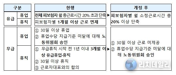 휴업, 휴직 등 유형별로 달리 정하고 있는 고용유지지원금 지원 요건은 ‘근로를 제공하지 아니하는 조치’로 통일된다. 복잡한 신청 요건을 단순화하여 현장의 이해와 활용도를 높일 수 있을 것으로 기대된다.