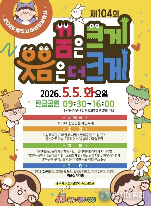 리치데일리 김상현 기자 | 충주시는 오는 5월 5일 오전 9시 30분부터 탄금공원에서 ‘제104회 어린이날’을 기념하는 ‘2026 어린이날 행사’를 개최한다고 밝혔다.