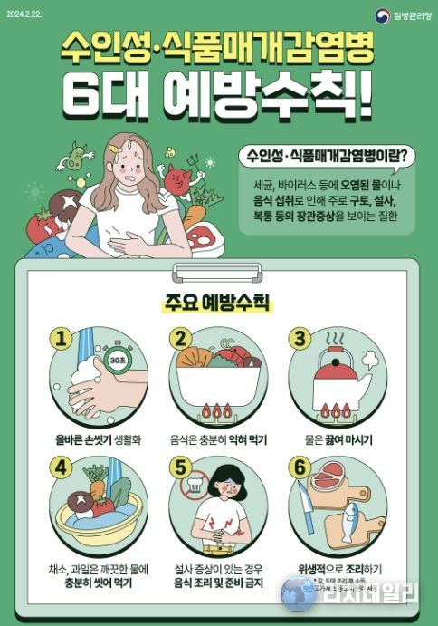 보건소 관계자는 수인성·식품매개감염병 예방을 위한 6대 수칙으로 ▲흐르는 물에 30초 이상 비누로 손 씻기 ▲음식은 충분히 익혀 먹기 ▲물은 끓여 마시기 ▲채소·과일은 깨끗이 씻어 먹기 ▲설사 증상 시 음식 조리·준비 금지 ▲조리기구 구분 사용, 소독 등 위생적 조리를 실천해 줄 것을 당부했다.