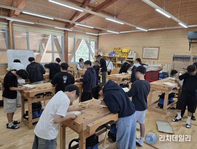 리치데일리 김상현 기자 | 상주시 성주봉자연휴양림의 상주목재문화체험장과 힐링센터에서는 지난 4월 27일 안동경덕중학교 학생들 150여명을 대상으로 목재문화체험장과 힐링센터에서 독서대 만들기 체험과 숲 해설 체험을 진행했다.