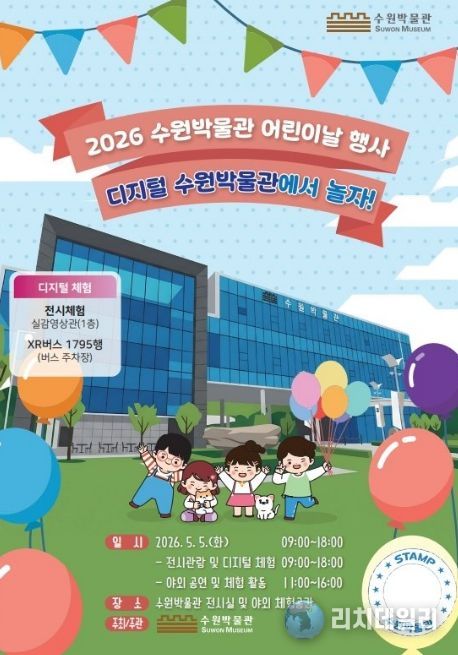 리치데일리 김상현 기자 | 수원박물관은 5월 5일 오전 9시부터 오후 6시까지 전시실과 야외 체험 공간에서 어린이날 행사 ‘디지털 수원박물관에서 놀자!’를 연다.