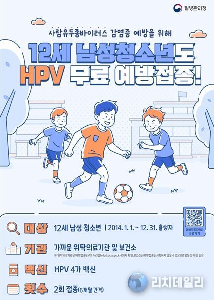 리치데일리 김상현 기자 | 인천광역시는 2026년 5월 6일부터 12세 남성 청소년(2014년생) 대상으로 사람유두종바이러스(Human Papillomavirus, HPV) 국가예방접종 지원을 시작한다.