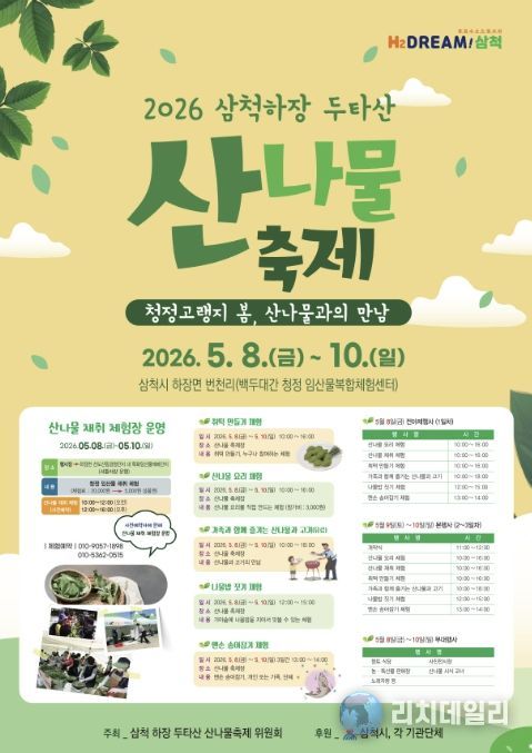 시 관계자는 “이번 축제를 통해 삼척 산나물의 우수성을 널리 알리고 브랜드 가치를 높여 지역경제 활성화에도 기여할 것으로 기대한다”라고 전했다.
