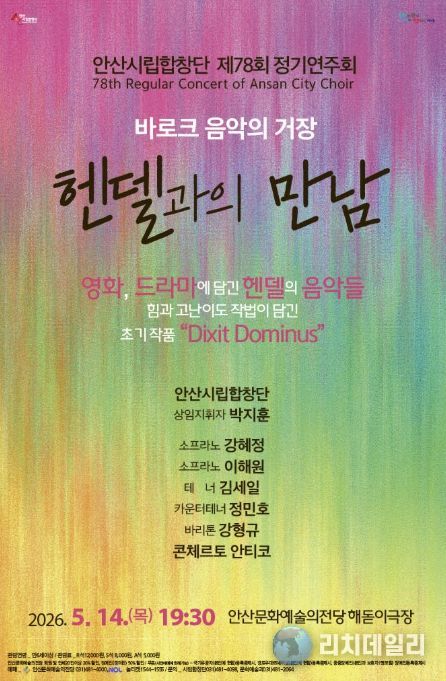 특히 공연의 하이라이트로는 헨델 초기 걸작인 ‘Dixit Dominus’가 무대에 오른다. 화려한 대위법과 빠른 전개, 장엄한 합창이 특징인 이 곡을 안산시립합창단의 탄탄한 앙상블로 만나볼 수 있을 것으로 기대된다.