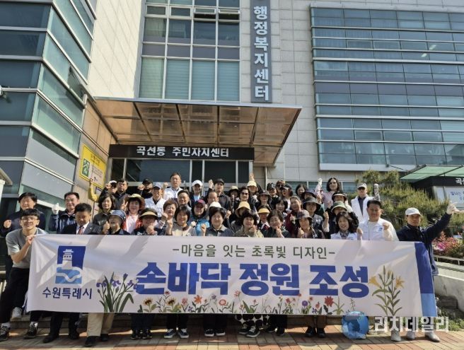 리치데일리 김상현 기자 | 지난 27일, 수원시 권선구 곡선동 행정복지센터는 관할 내 손바닥 정원에서 지역 주민 및 유관 단체원들과 함께 ‘손바닥 정원 조성 행사’를 성황리에 개최했다.