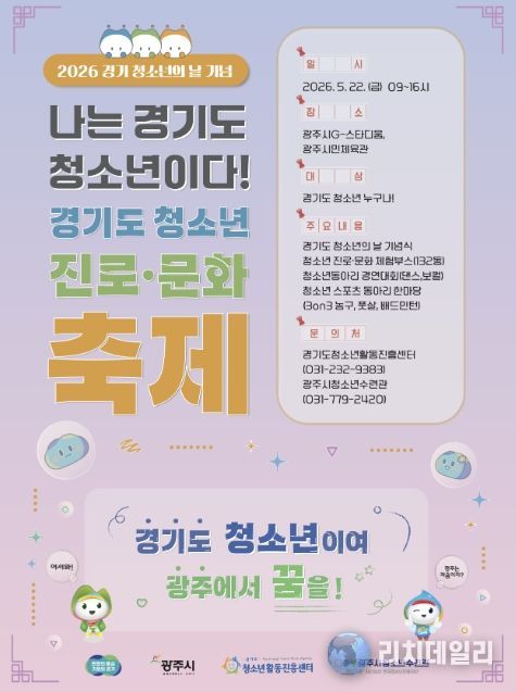 리치데일리 김상현 기자 | 광주시는 오는 5월 22일 광주시 G-스타디움 및 광주시민체육관 일원에서 ‘2026년 경기도 청소년 진로·문화 축제’를 개최한다고 29일 밝혔다.