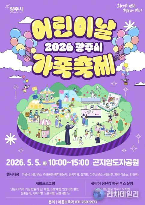 시 관계자는 “어린이날 가족축제가 아이들에게 꿈과 희망을 키우는 특별한 하루가 되고 가족 모두에게 소중한 추억이 되길 바란다”며 “앞으로도 어린이들이 건강하고 행복하게 성장할 수 있는 환경을 조성해 아동친화도시 광주시를 만들어 나가겠다”고 말했다.