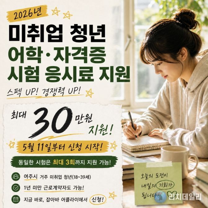 리치데일리 김상현 기자 | 여주시는 오는 5월 11일부터 미취업 청년에 어학·자격시험 응시료를 지원하는 ‘경기청년 역량강화 기회지원’ 사업 접수를 시작한다.